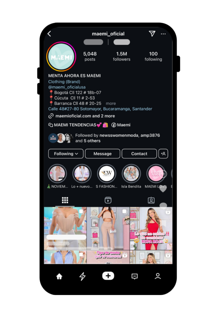 Maemi no solo ofrece prendas de alta calidad, sino también una comunidad fiel de más de 1.5 millones de seguidores que confían en nuestro buen gusto y estilo. Nuestra presencia en redes sociales valida el amor por nuestras colecciones y el éxito de nuestros mayoristas. ¡Sé parte de una marca en constante crecimiento y garantiza que tu negocio también lo haga!